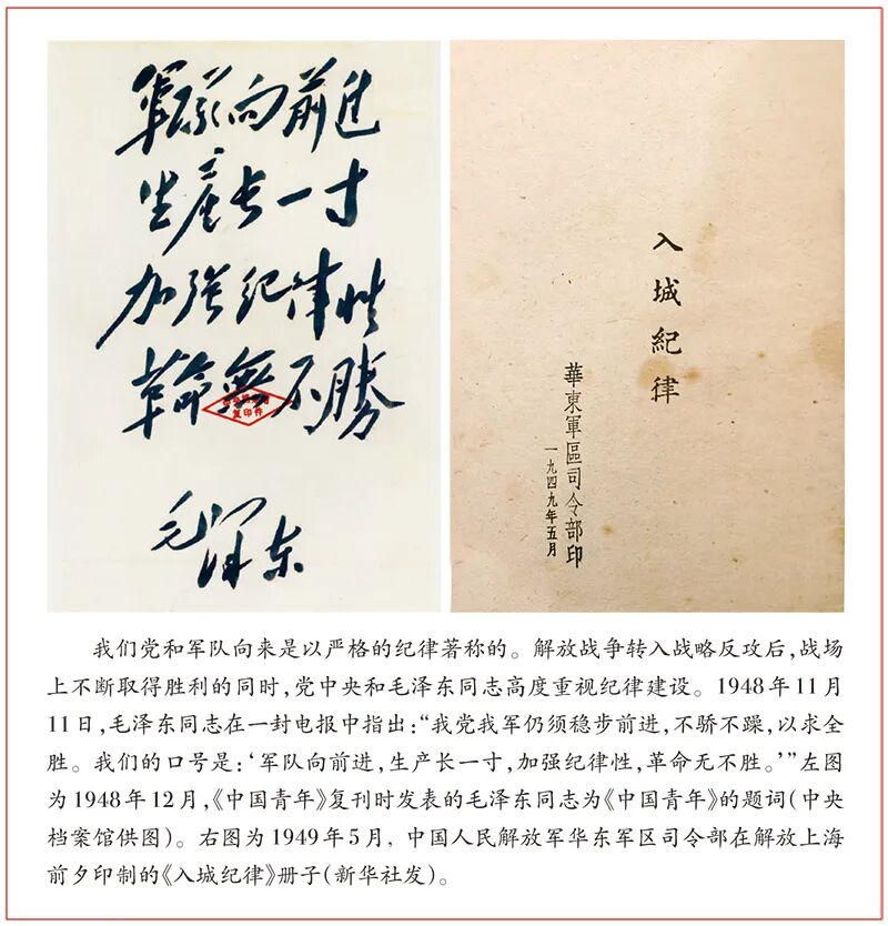 纪律上的要求稍微放松,病毒就会趁虚而入。比如前文提到,从1948年1月到1949年1月,党中央反复多次强调加强纪律建设,应该说总的情况是很好的,但也有极个别部队思想上没有始终绷紧弦。1949年4月23日,第三野战军第35军进入南京,南京解放,但入城部队部分官兵破坏纪律的行为,严重损害了人民解放军的声誉和形象。毛泽东同志亲自为中共中央军委起草电报,对此予以严厉批评:“从三十五军在南京数天内所犯无政府无纪律错误行为看来,你们过去在准备渡江时期,对于外交政策及其他许多事项(例如军队在城市中看戏、看电影、洗澡、坐电车、坐公共汽车等事必须和各界人民同样买票,不许特殊,以及未得上级许可不得接受人民慰劳等)似乎没有明确规定。如果没有规定,你们应速规定,通令各军一体遵行。如果过去已有规定,三十五军故意违犯,则除检查该军工作做出结论通令各军外,应向各军重申前令,引起注意,不许再有违犯。”并要求“转发华野、中野,各军、各师以资警惕”。纪律建设不“松绑”,领导干部的责任重大。领导干部之所以被称为“关键少数”,是因为在本地区、本部门、本单位拥有较大的决策权、管理权、执行权、监督权、人事权、财务权,其影响带动作用举足轻重。“人不率则不从,身不先则不信。”一些地方出现的区域性、系统性、塌方式腐败,与“关键少数”密切相关。紧盯“关键少数”,就抓住了全面从严治党、严肃党纪党规的“牛鼻子”。纪律建设不“松绑”,扎紧织密制度笼子至关紧要。制度建设带有根本性、全局性、稳定性、长期性,是全面从严治党的长远之策、根本之策。历史上我们党是吃过制度不健全的亏的。党的十八大以来,以习近平同志为核心的党中央把制度建设贯穿新时代党的建设各方面,陆续制定修订了《关于新形势下党内政治生活的若干准则》、《中国共产党党内监督条例》、《中共中央政治局关于加强和维护党中央集中统一领导的若干规定》、《中国共产党重大事项请示报告条例》、《中国共产党党组工作条例》、《中国共产党中央委员会工作条例》等党内法规,已经形成了一套内容科学、程序严密、配套完备、运行有效的党内法规制度体系。一方面,要不断提升广大党员对制度的认同感,强化制度执行力,让铁规发力、让禁令生威,使制度真正成为硬约束而不是“橡皮筋”;另一方面,要与时俱进,结合党的建设的理论和实践创新,把这些创新成果总结好、提炼好,升华为党规党纪,不断完善党的建设的制度体系。新征程上,我们一定要站在事关党长期执政、国家长治久安、人民幸福安康的高度,把全面从严治党、加强党的纪律建设作为党的长期战略、永恒课题,坚决摒弃权宜之计、一时之举的思想,坚决克服松劲歇脚、疲劳厌战的情绪,坚决防止转变风向、降调变调的错误期待,始终坚持问题导向,保持战略定力,发扬彻底的自我革命精神,永远吹冲锋号,把严的基调、严的措施、严的氛围长期坚持下去,把党的伟大自我革命进行到底。(转载请注明来源:求是网)
