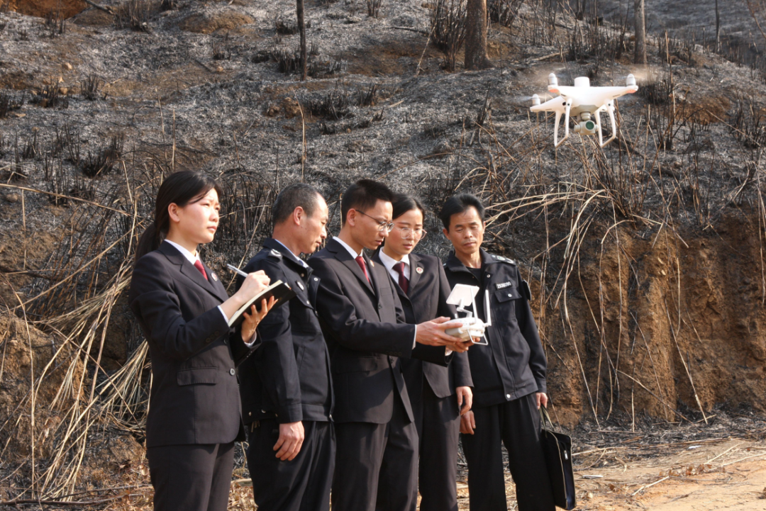 面对这一情况,全南县检察院迅速行动。2022年6月14日,发现该案涉及公益林受损可能损害社会公共利益后,立即进行民事公益诉讼立案。随即成立办案组,深入火灾发生地,开展实地调查走访、现场勘验,仔细核实公益林损毁情况,全面调查收集案件证据。
