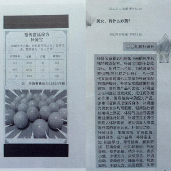 “前几天,我从微信好友那里购买了一些补肾药,服用后发现身体不适,怀疑是假药。”2023年8月,黄先生报案称其通过朋友介绍,花费640元在一名微信好友处购买了20颗名为“补肾宝”的药品,服用4颗后出现身体不适,疑似购买到了假药。